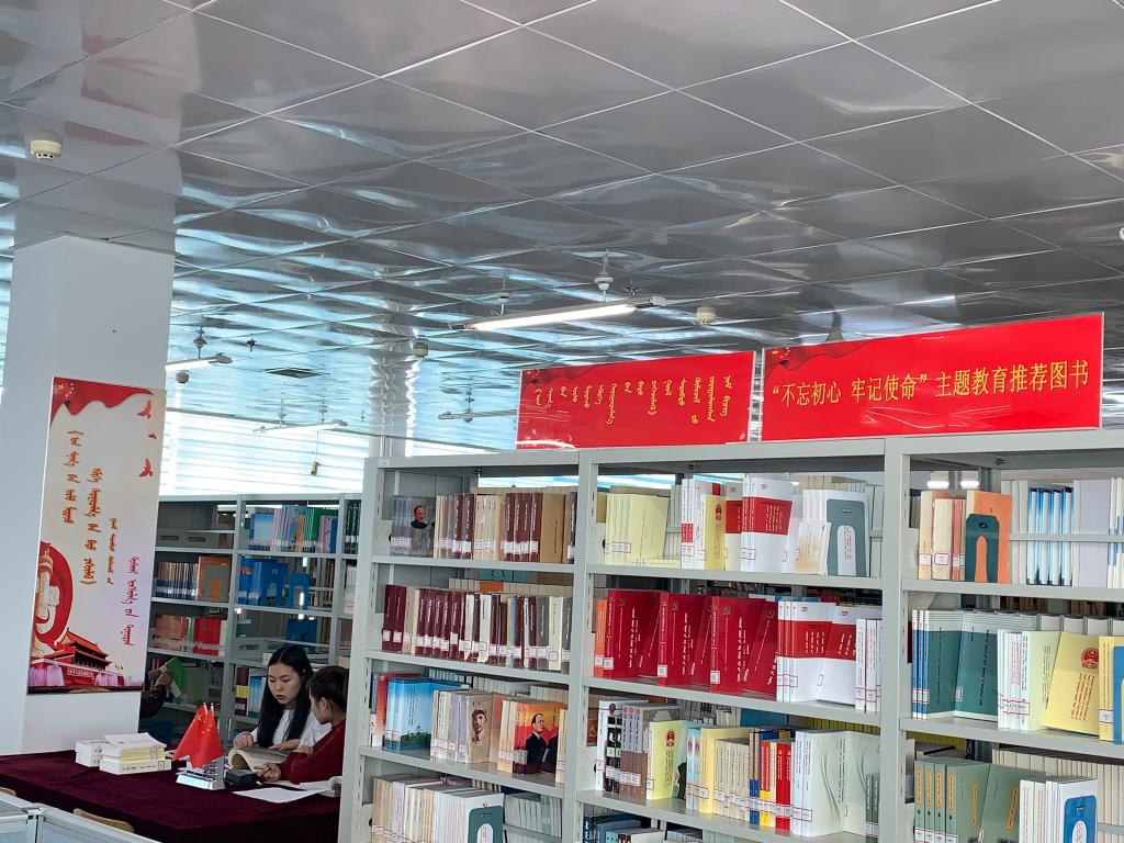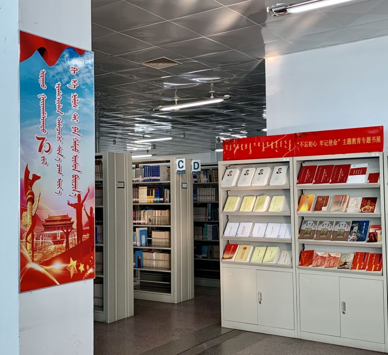 为了深入推进呼伦贝尔学院 “不忘初心、牢记使命”主题教育各项工作,充分发挥图书馆阅读推广主阵地的作用,图书馆从认真筹备、强化宣传、丰富内容入手,深入挖掘已有馆藏资源,开展了以“不忘初心、牢记使命”为主题的蒙文图书阅读推荐活动,在蒙文阅览室内设置了专题书架、专题阅读区,制作了主题为建国70周年“我与我的祖国一起成长”的海报。在三楼走廊宣传栏里设置了“不忘初心 牢记使命”主题教育推荐书目专栏,为我校师生准备了红色文学、伟人传记、党史党情等有关党的经典蒙文图书200余册,以此传承红色基因,缅怀革命英雄的无私精神,牢记党的初心和使命。