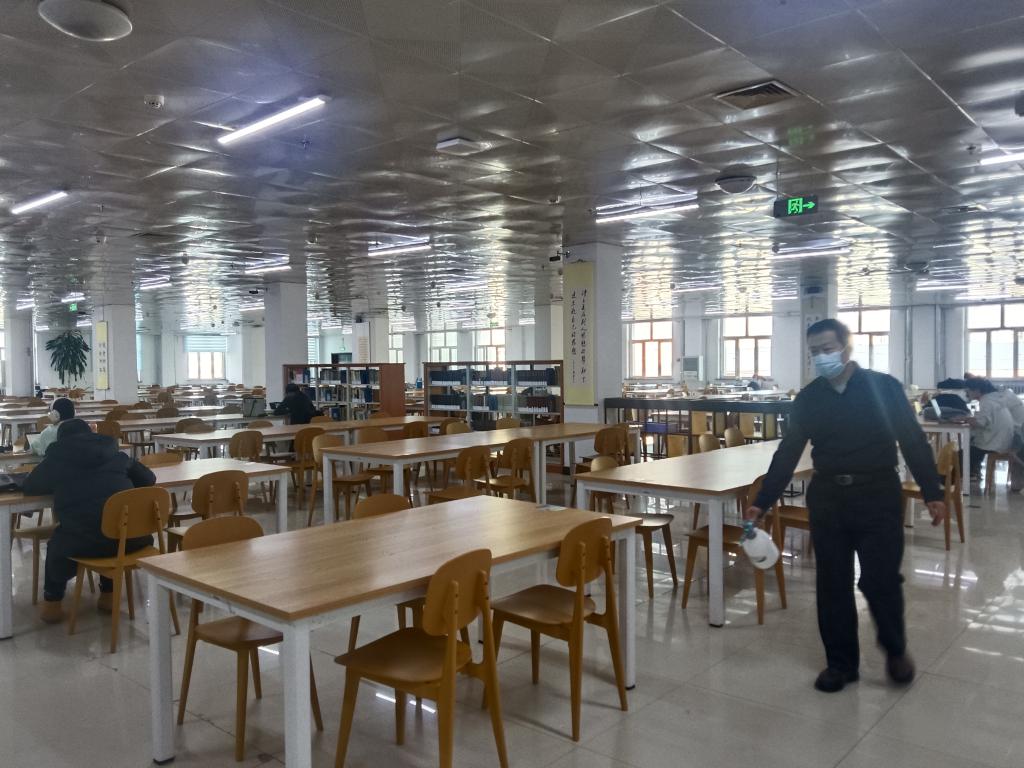 活动中,志愿者们手持专业消杀设备,以“全覆盖、无死角、不遗漏”为标准,重点对读者流量大、使用频率高的自习室、阅览室等核心区域开展精细化消杀。从书架缝隙、桌椅表面到地面墙角、门把手等高频接触部位,党员们都进行全面喷洒,精准阻断病毒传播路径。
